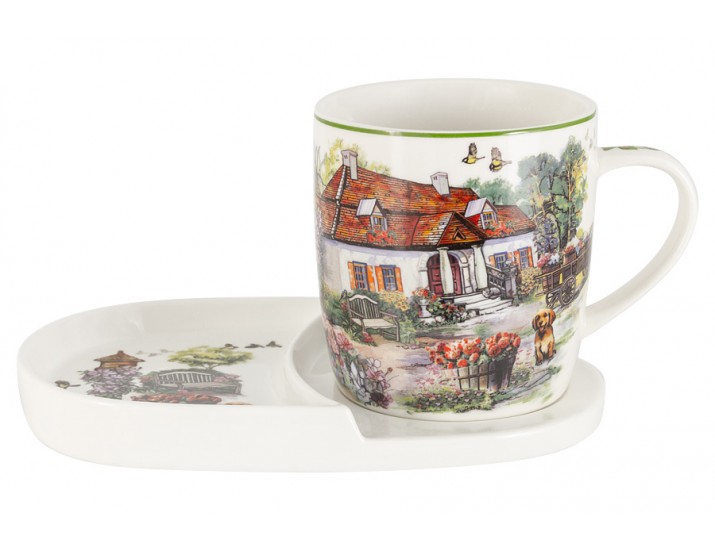 Кружка 400мл с блюдцем-подносом Carmani Белый коттедж
